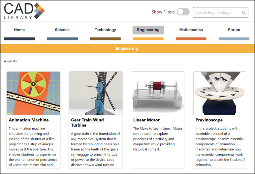 At the 2022 NTLS meeting in Washington, D.C., the NTLS STEM associations participated in planning for an extension to the CITE Journal that could be used to review educational objects as well as academic manuscripts. The NTLS STEM associations used support from an NSF Pathways to Enable Open-Source Ecosystems award (NSF No. 2229627) to establish an Educational CAD Model Library (www.CADLibrary.org; Figure 1).