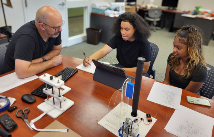 NSBE Jr. Students (on the right) Collaborate on Design of a Microscope